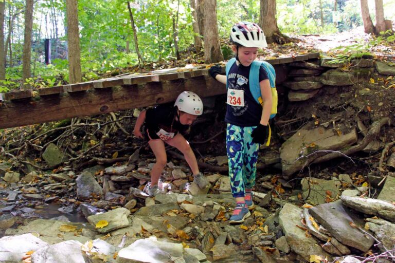 Kids will travel the course by mountain bike, on foot, on land or on water. (note: Age 6-7 racers will NOT be using a bike).